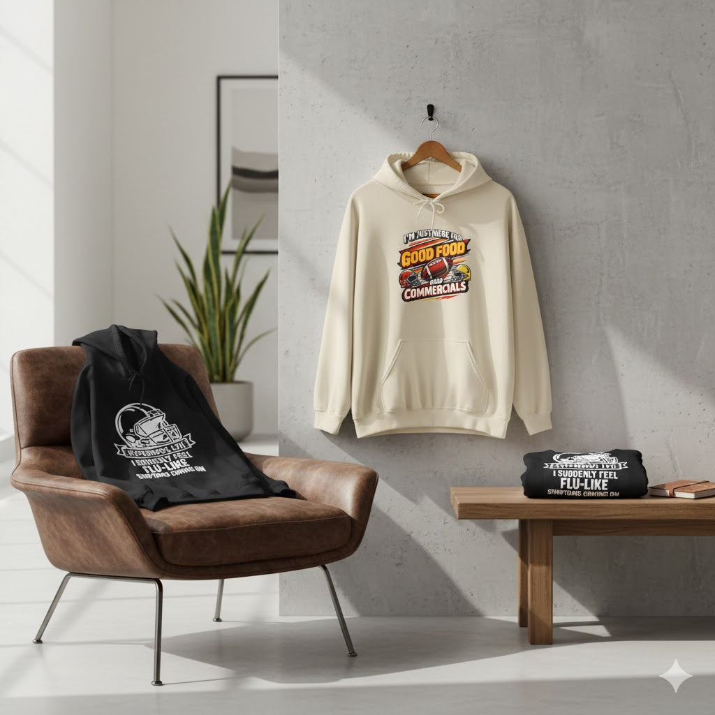Game Day Vibes Hoodie | I’m Just Here for Good Food and Commercials Hooded Sweatshirt