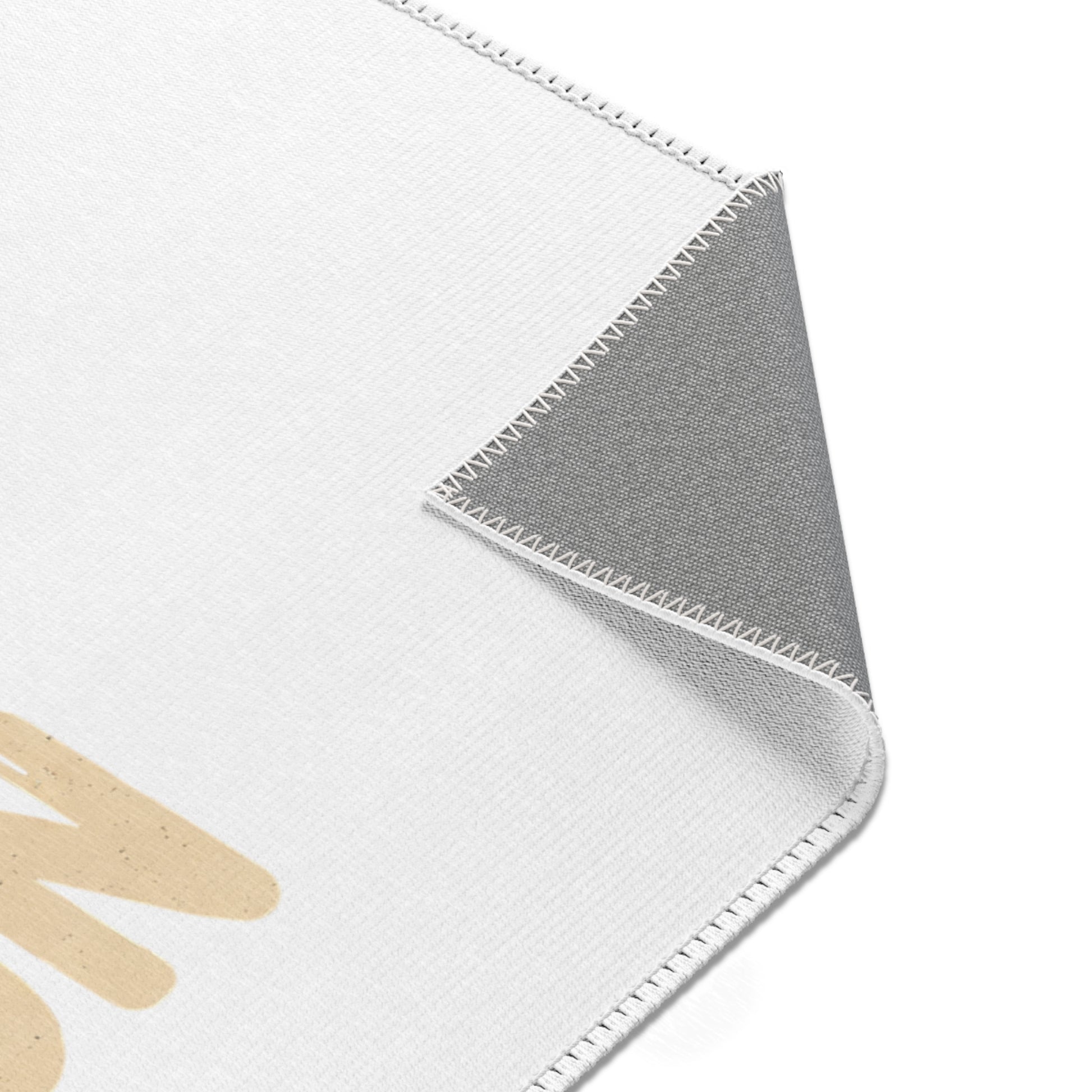Bright, soft chenille rugs that bring a warm, cozy accent to everyday spaces. The design reads with a faded, sunlit look—subtle warm beige lettering on a clean white field—so it anchors a kitchen nook, coffee corner, or breakfast spot without shouting. The low-profile pile and hemmed edges lie flat and feel pleasant underfoot, while the grey underside adds discreet durability. Lightweight and available in multiple sizes, this rug layers easily over hard floors to create a small, lived-in moment: a pause with your morning cup, a welcoming patch by the sink, or a quiet corner that invites you to linger.