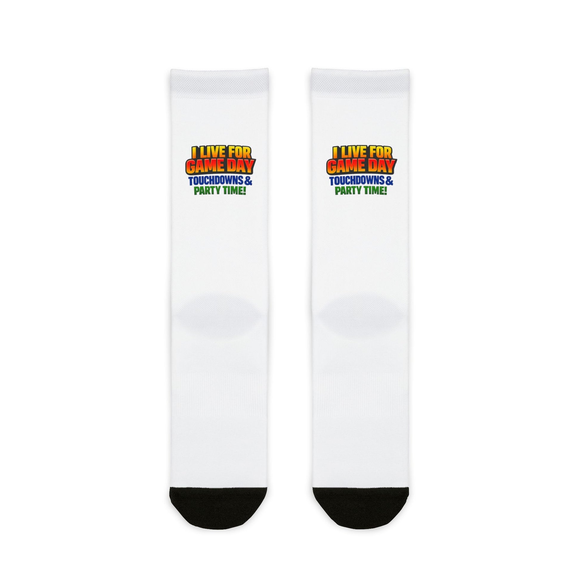 These soft, lightweight crew socks carry a playful game-day spirit right to your feet. The breathable polyester blend hugs comfortably while retaining shape through repeated wear. Bright sublimation graphics sit high on the calf so your team vibe shows whether you’re cheering in the stands or hosting friends at home. Black heels and toes add contrast and hide scuffs, while the 200-needle knit delivers a smooth, durable finish you can count on season after season. Slip them on for a tailgate, watch party, or casual weekend when you want a little extra energy in your step.