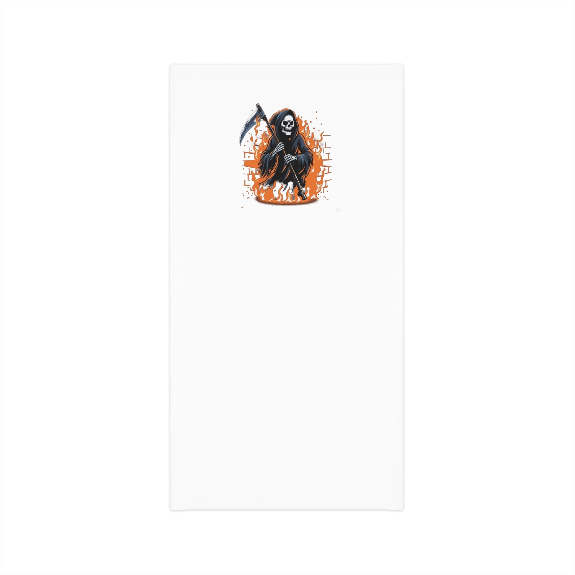 Lightweight neck gaiter printed with a bold, slightly gritty reaper illustration in black and orange. The slim design sits comfortably around the neck and can be pulled up over the face when wind or sun creeps in. Breathable microfiber moves with you, wicks moisture, and keeps sun off skin while the overlocked seams hold up to repeated wear. Wear it layered under a jacket for evening motorcycle rides, pack it for fall hikes, or flip it into a headband for hands-on projects — it’s made to move with whatever you’re doing and to add a little edge to your everyday kit.