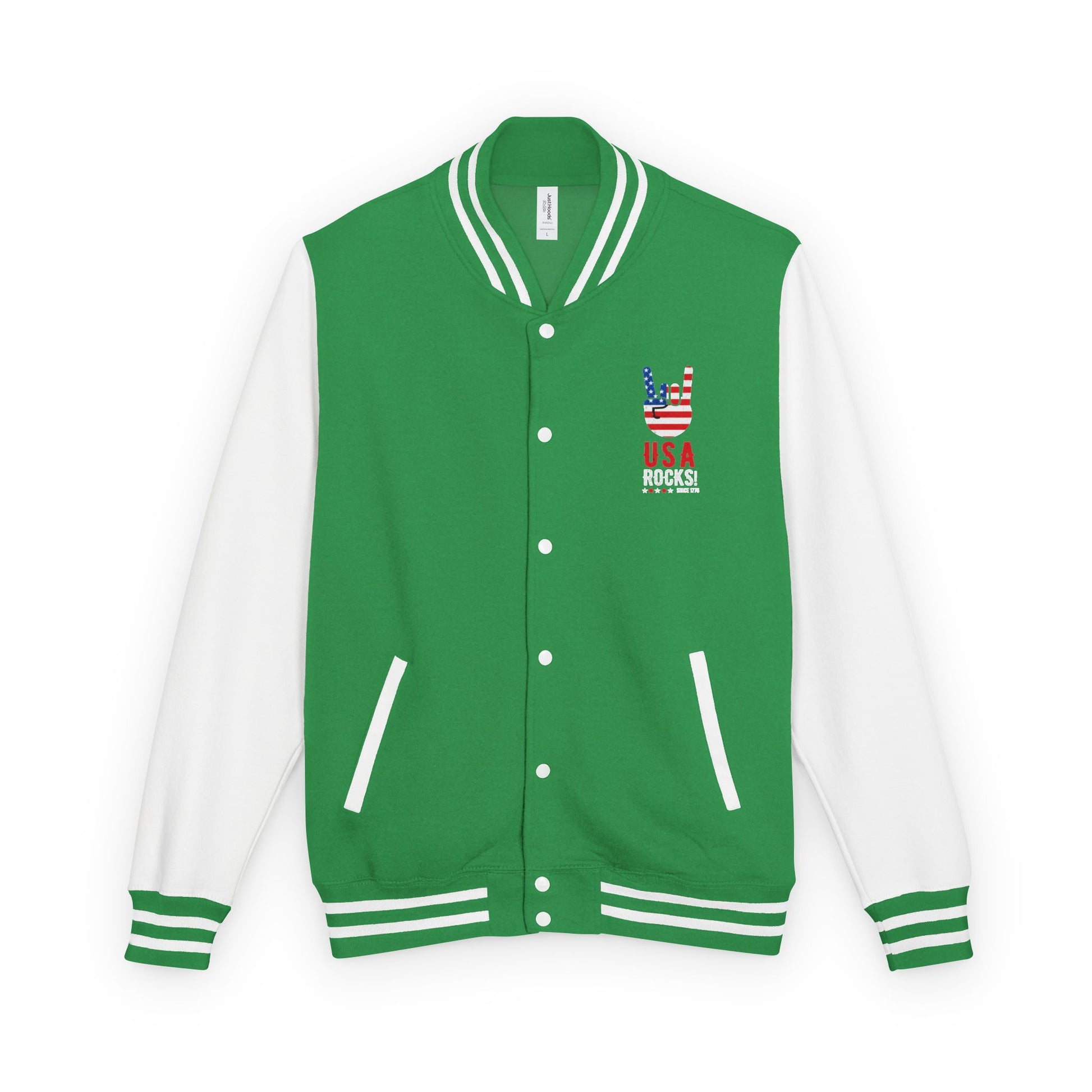 This varsity-style letterman jacket brings the lived-in comfort of garment-dyed cotton together with classic collegiate lines. It settles like a warm memory across your shoulders — structured through the body with soft, contrasting sleeves and striped ribbing at the cuffs and hem. The small embroidered emblem on the chest adds a subtle, proud detail without shouting. Wear it to slow weekends, campus nights, or road trips when you want something that looks effortless but feels thoughtfully made. The medium-heavy weight gives structure and warmth while staying breathable, and the sewn-in label and quality stitching make this jacket feel like something you'll reach for season after season.